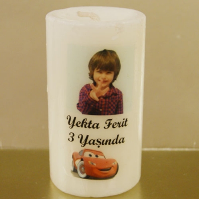 Silindir şeklindeki mumların üzerine istediğiniz fotograf ve yazı eklenebilir. Fiyat ve süsleme için bizimle iletişime geçebilirsiniz.